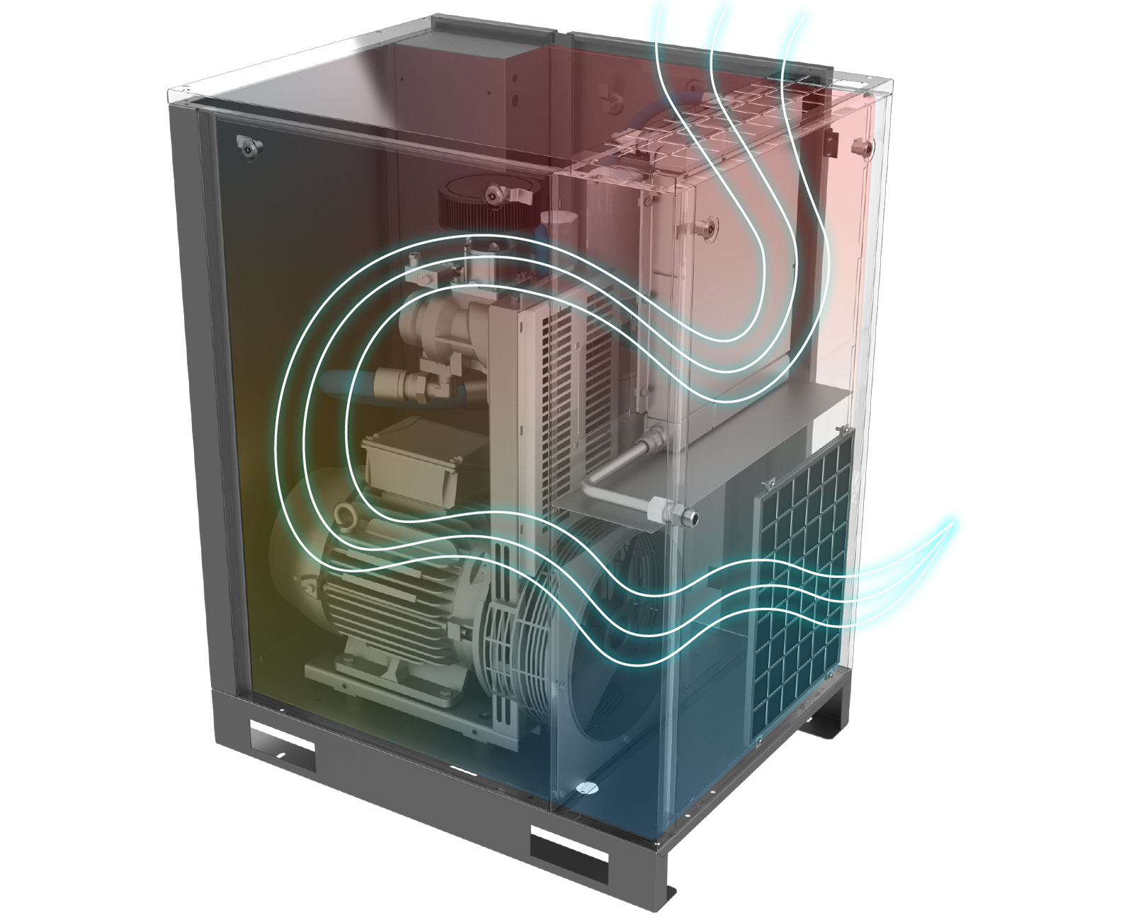 Optimized intake chamber and insulated cold air intake increase energy efficiency. (30 kW and above)