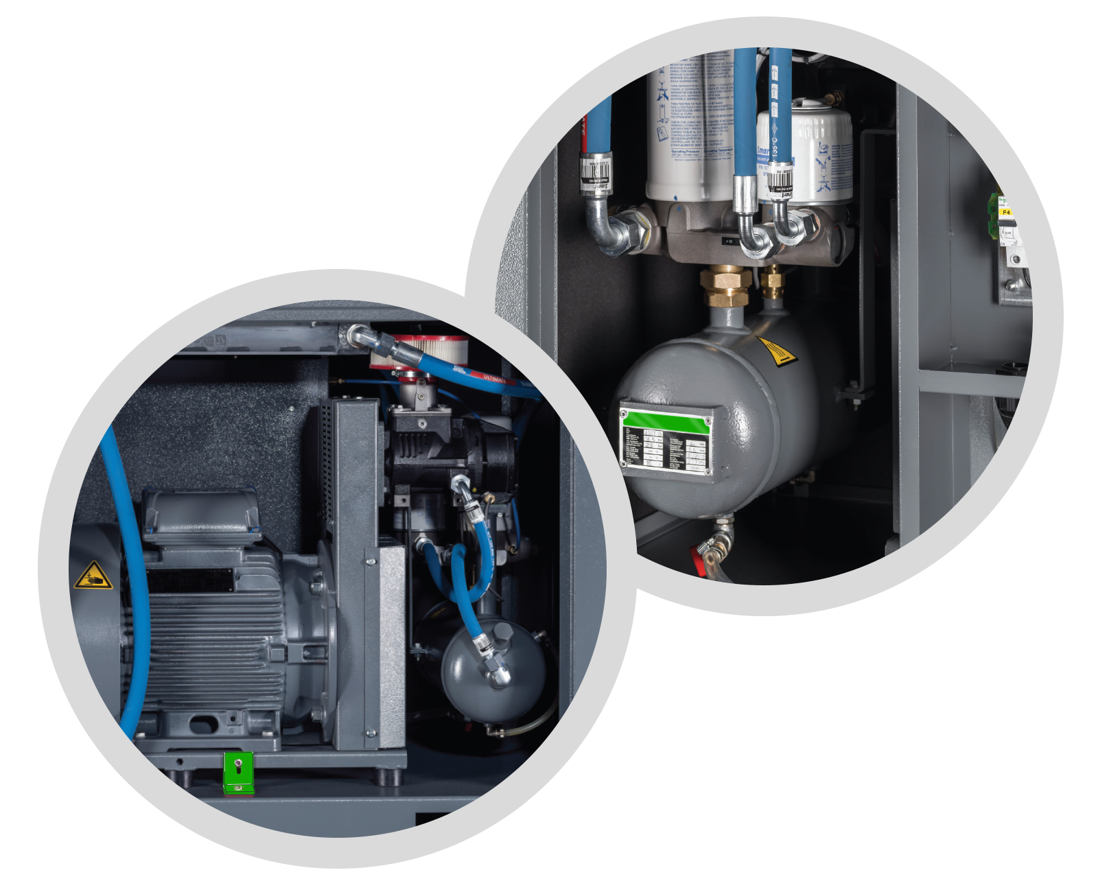 • Durable screw block provides high-capacity of air and is specially selected for each model’s capacity requirement