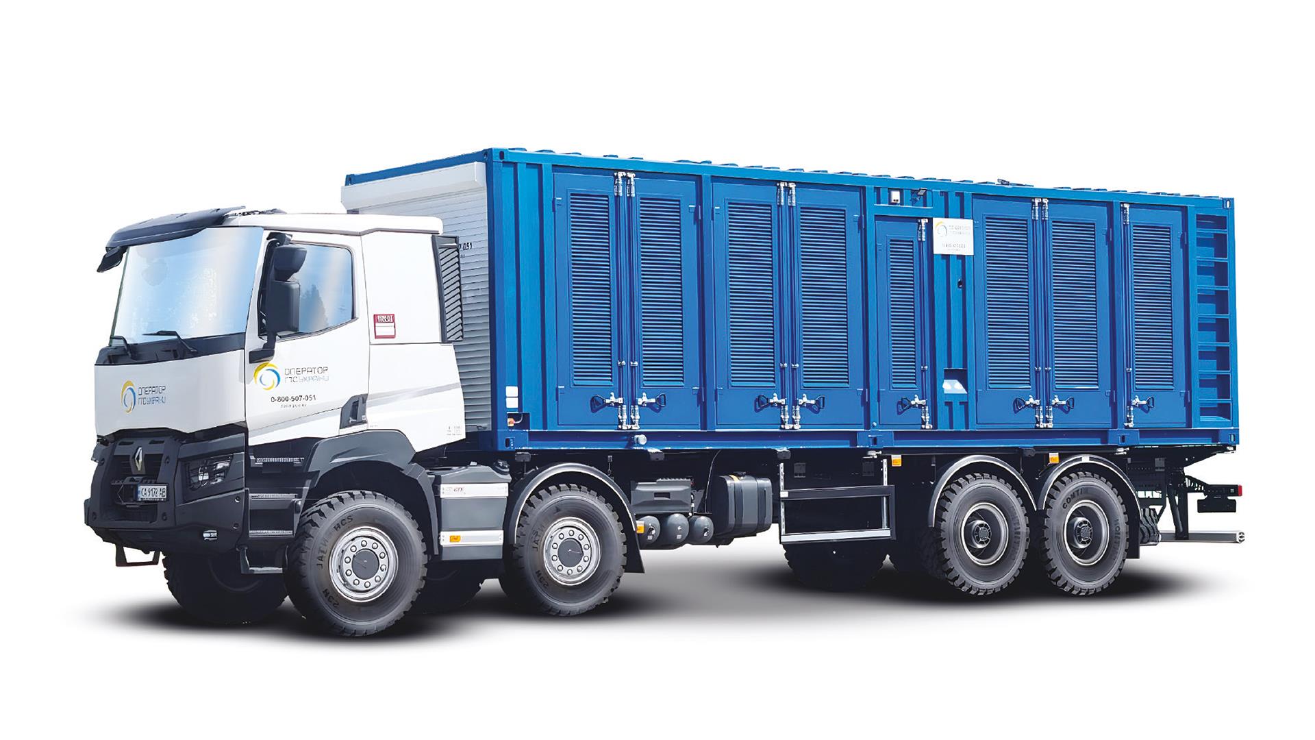 It is mounted on a truck chassis from